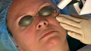 - Непосредственно воздействие на кожу лазерным аппаратом со специальной насадкой (предварительно и пациент, и врач надевают защитные очки).